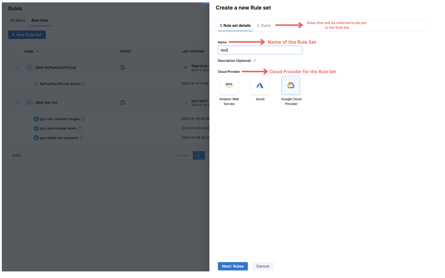 Rules help you set up Asset Governance for your cloud provider. A Rule is essentially a small file with a set of logic that you can run on your cloud infrastructure. For example, there might be a scenario in which you want to delete all GCP snapshots older than 14 days. In such a case, we write and run a rule which does this for us.