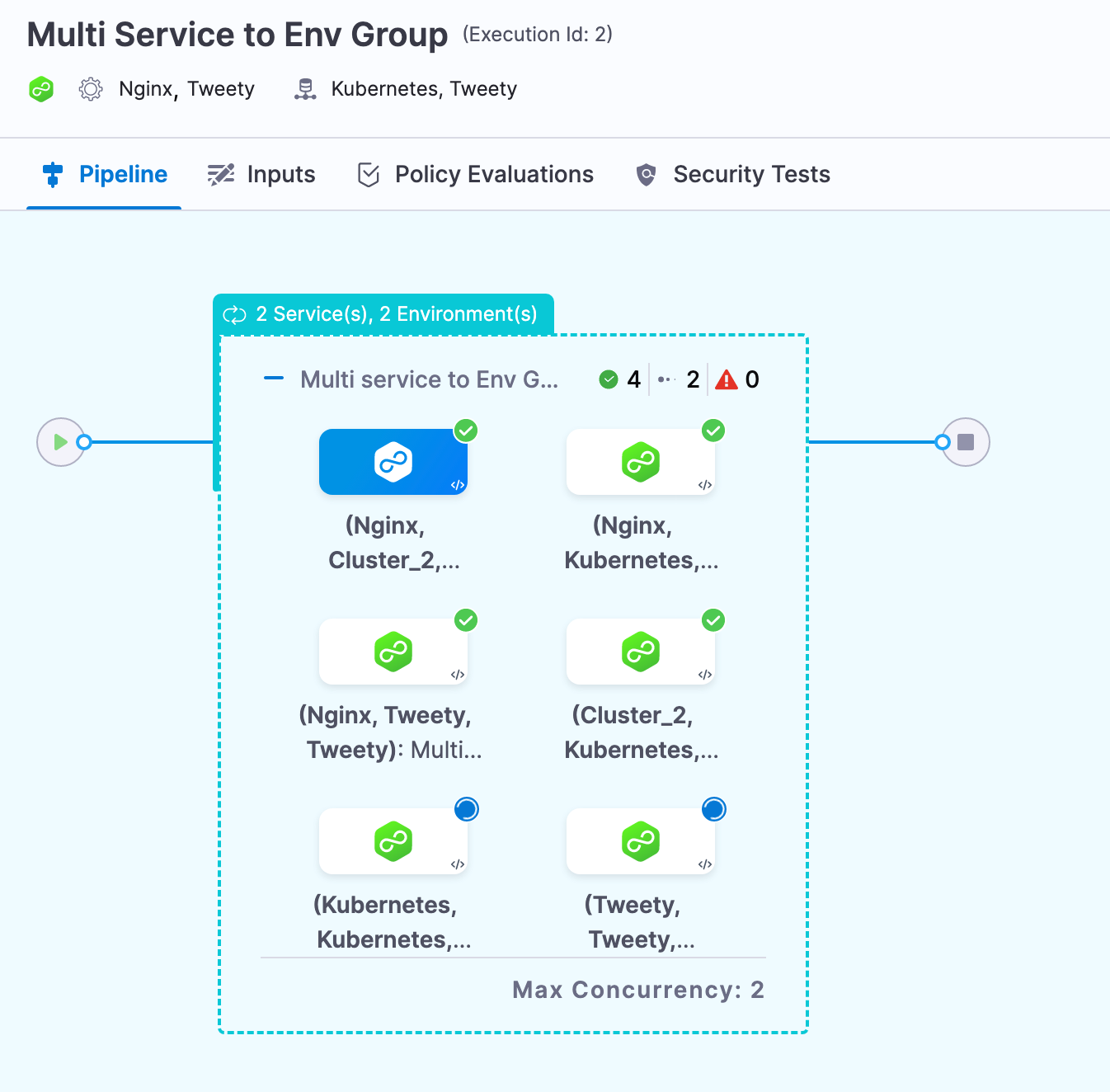 Often, you will deploy one service to one Environment in a CD stage. In some cases, you might want to use multiple services and environments in the same stage.