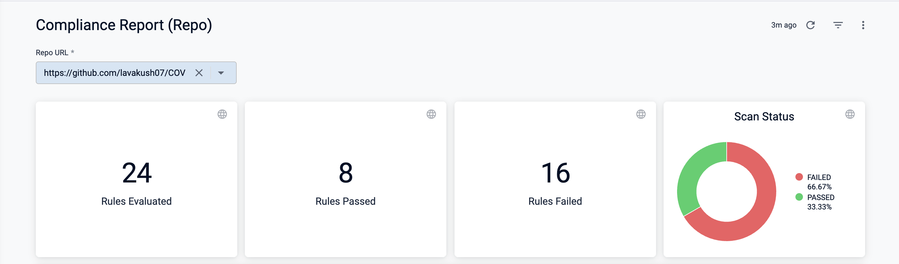 Rules Evaluated: Total number of compliance rules evaluated for the selected repository.